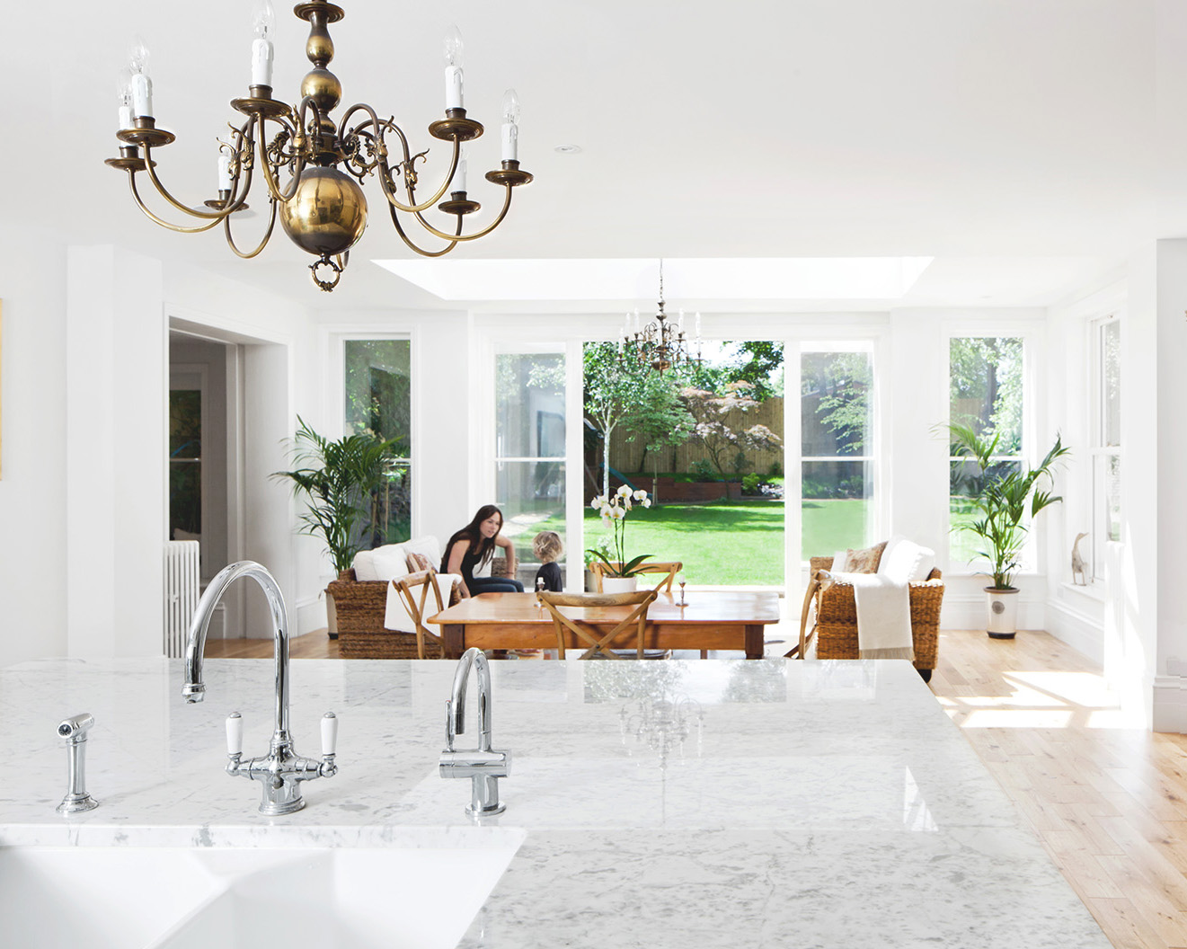 This detached house on a private road in Barnes was in a terrible condition. It took bravery and imagination for the clients to embark on the project and realise its full potential as a family home. An extended volume provided the opportunity to re-shape the existing arts and crafts into a series of generous flowing spaces to suit modern family life. The rooms with the best proportions were reconnected by careful circulation alignments and taller, wider openings. A separate front door within the garage wing made a logical distinction between the formal and service spaces. This helped organize the plan to make it efficient at the front of the house and spacious at the rear, flowing out to an expansive garden with a very natural planting scheme that complements the house.