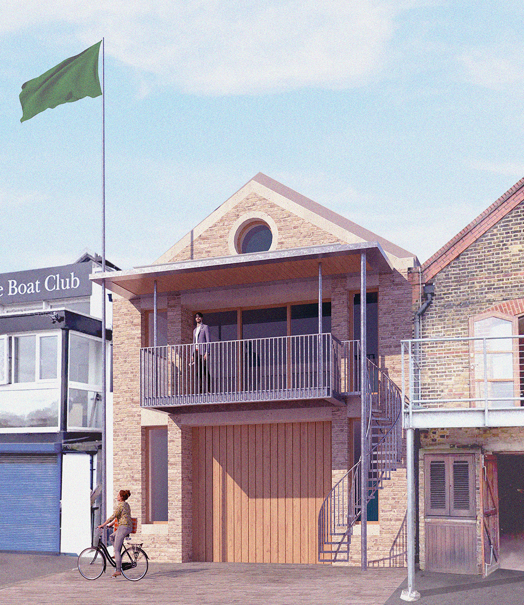 Occupying a central location within the boathouses along the embankment of the River Thames at Putney, Crabtree Boathouse is need of comprehensive renovation. Our proposals include the creation of accommodation for crews and space for land-training, new changing rooms, and an improved function room and balcony for watching events on the river including as The Boat Race. The riverfront elevation is restored with exposed brickwork and inset oak windows, which slide away completely to provide an uninterrupted view over the tideway.